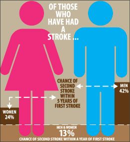 If youre a stroke survivor, your doctor has likely stressed the importance of controlling your blood pressure and managing other important risk factors. Hopefully, youre paying close attention to that advice, because the chances of having a second stroke within a year of the first one are about 5 to 14 percent, according to the National Stroke Association. Within five years, the likelihood of a second stroke jumps to 24 percent for women and 42 percent for men.